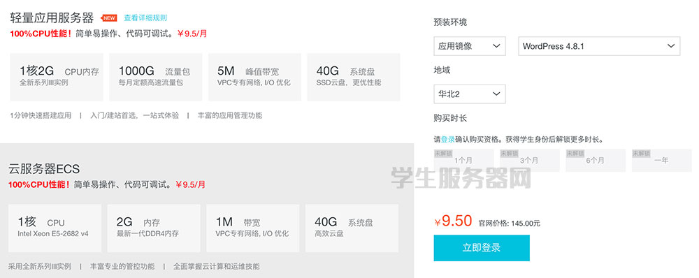 ①阿里云:阿里云学生服务器服务器9.5元/月